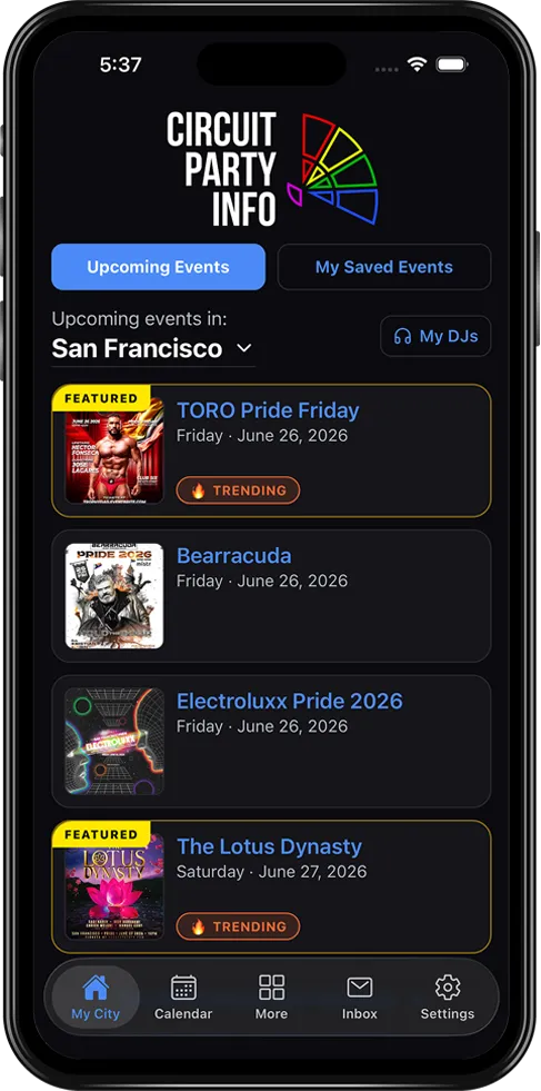 Discover the hottest circuit parties, afterhours and more — in one free app!